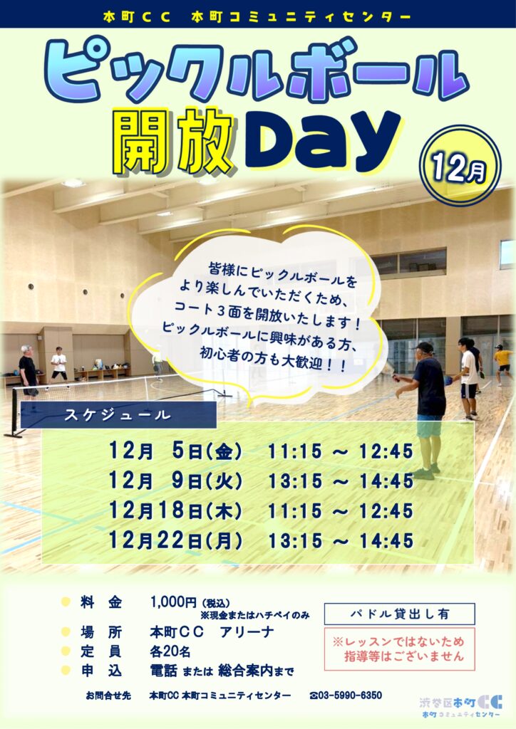 12月のピックルボール開放DAY日程確定&予約開始しました!