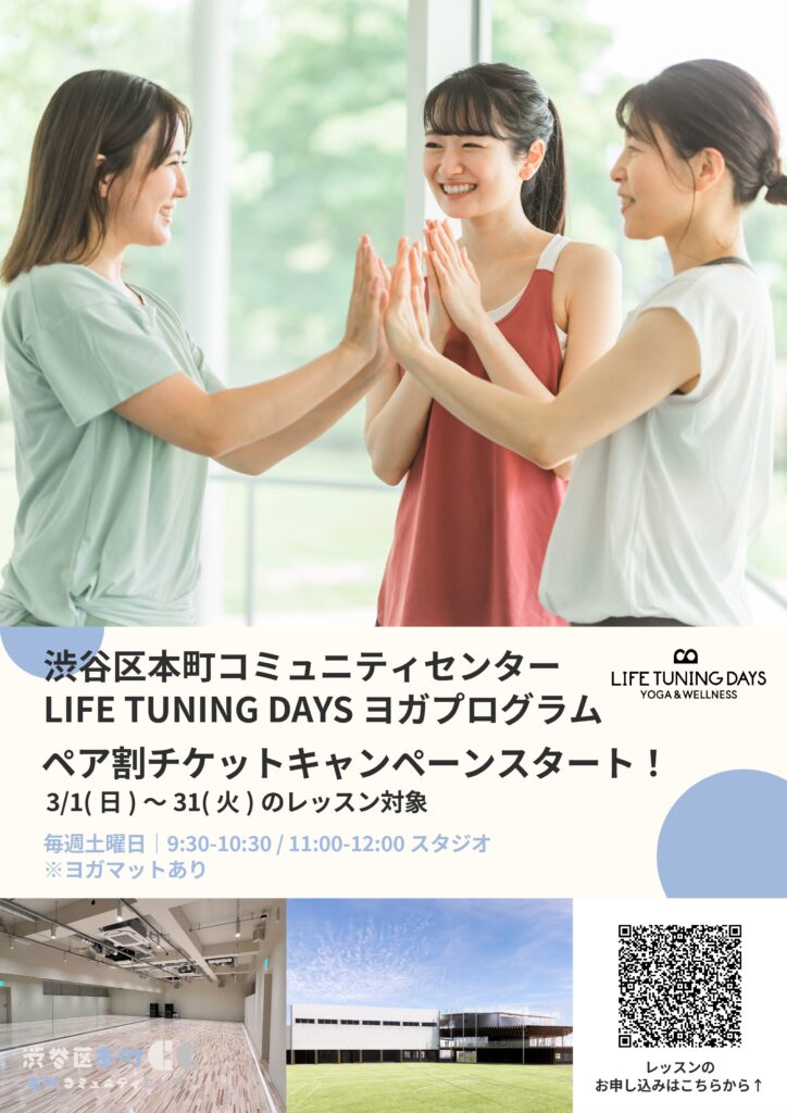 毎週土曜日開催のヨガレッスンに、3月はペア割でお得に参加できるチャンス!